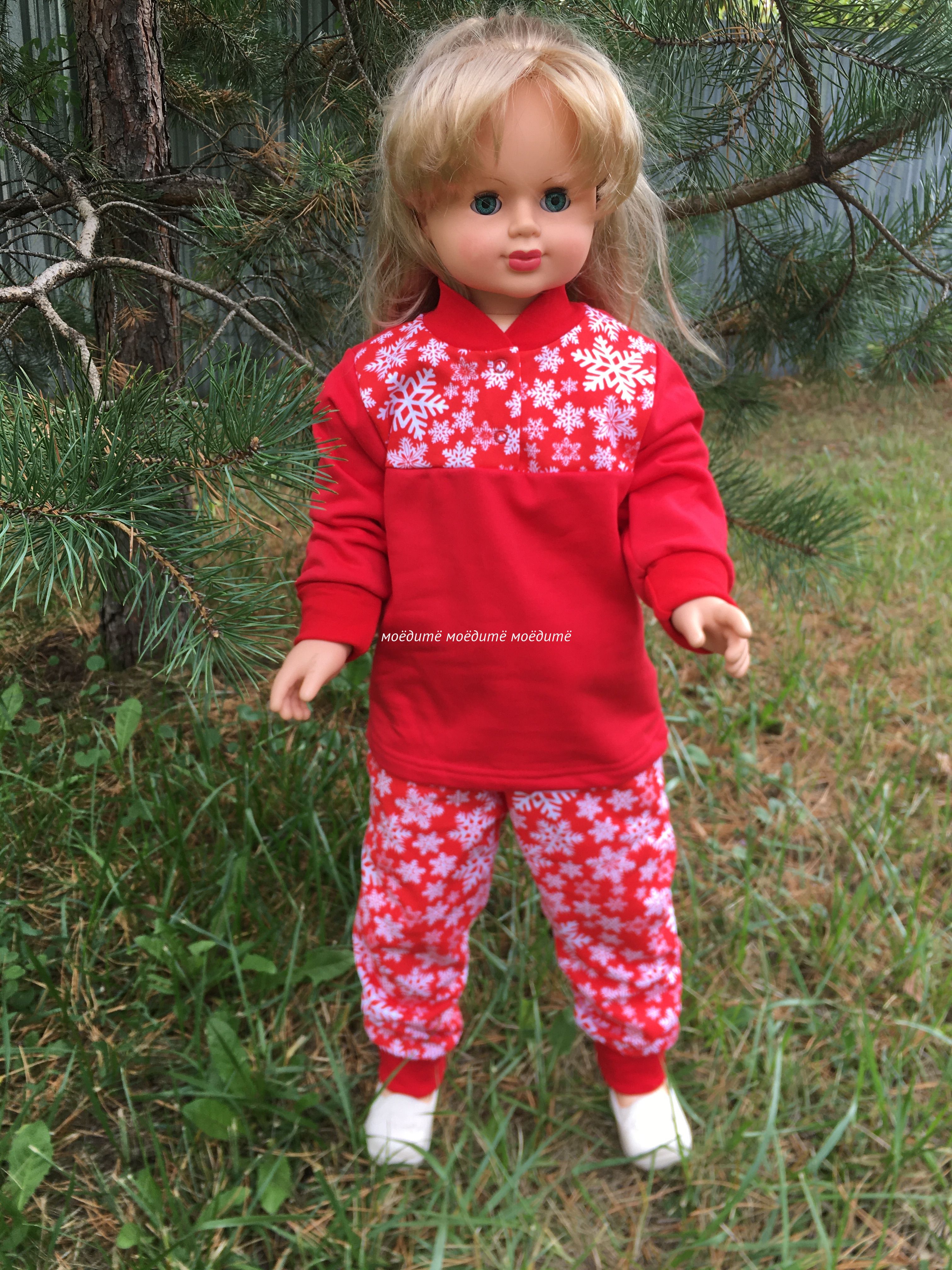 "МоёДитё" костюм домашний футер с начёсом "Снежинки" ПЖ157 красный "Магнолия" в Магнитогорске